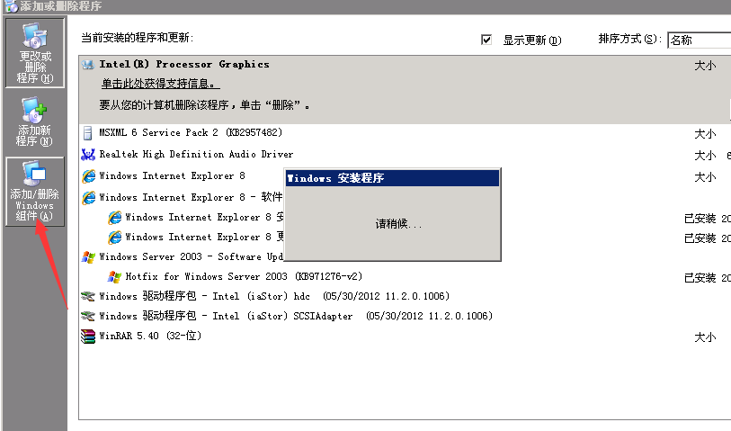 2、雙擊【添加或刪除程序】,單擊【添加/刪除Windows組件】,稍等會(huì)兒就能看到組件向?qū)?/p>