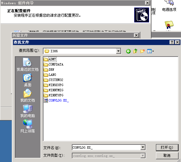6、點(diǎn)擊【下一步】配置組件,期間會(huì)提示需要一些文件,我們只需要將文件來(lái)源選擇到剛開(kāi)始解壓出來(lái)的i386文件夾,點(diǎn)擊確定即可。