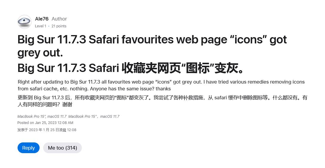 蘋果 macOS 11.7.3 更新導(dǎo)致 Safari 收藏夾圖標(biāo)無法正常顯示